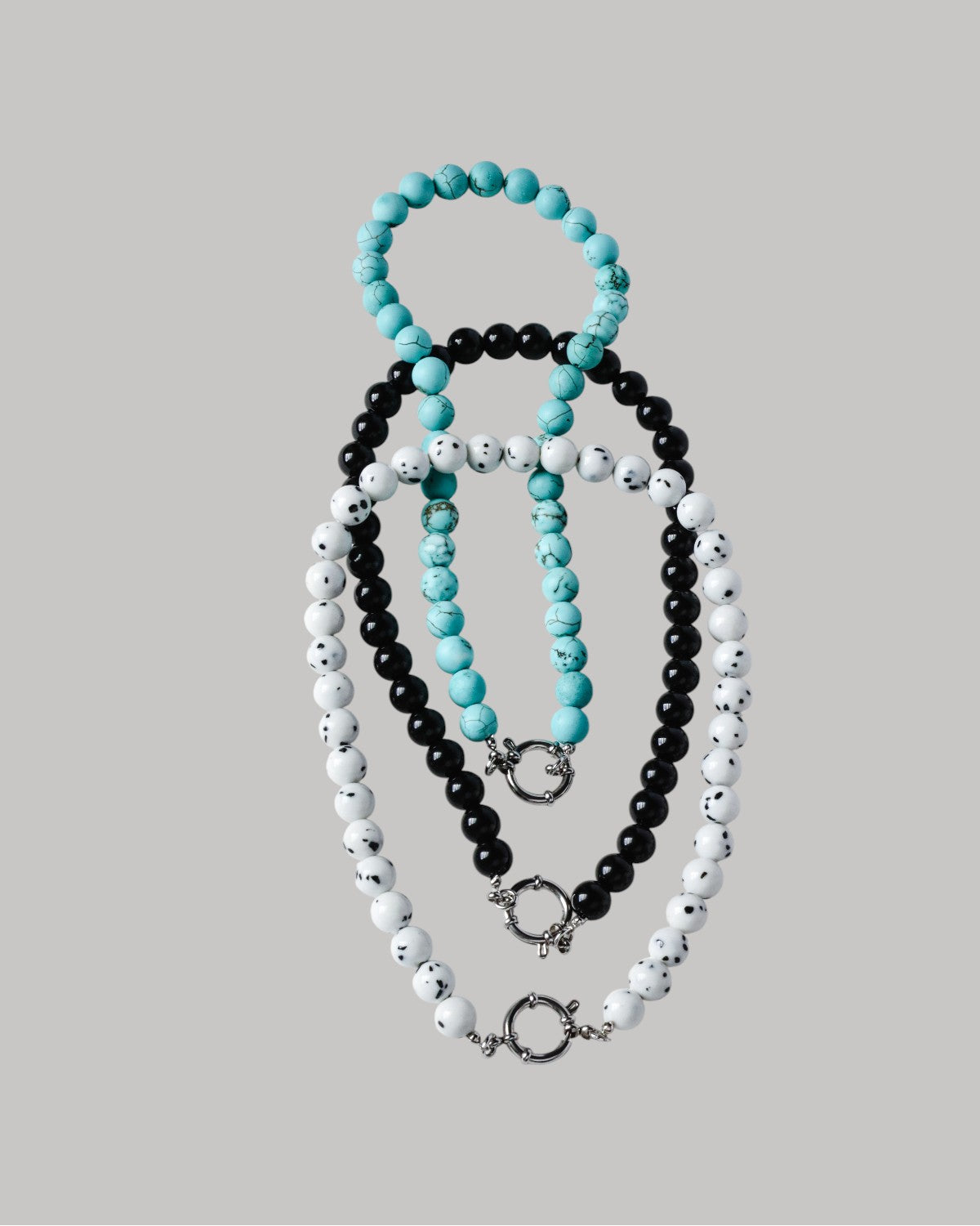 A necklace made for mix-and-match magic – with a chunky toggle clasp that loves to play dress-up. Add your favourite charm or wear it solo for effortless style. Take your pick from three dreamy looks: matte turquoise, black agate, or bodhi jade.