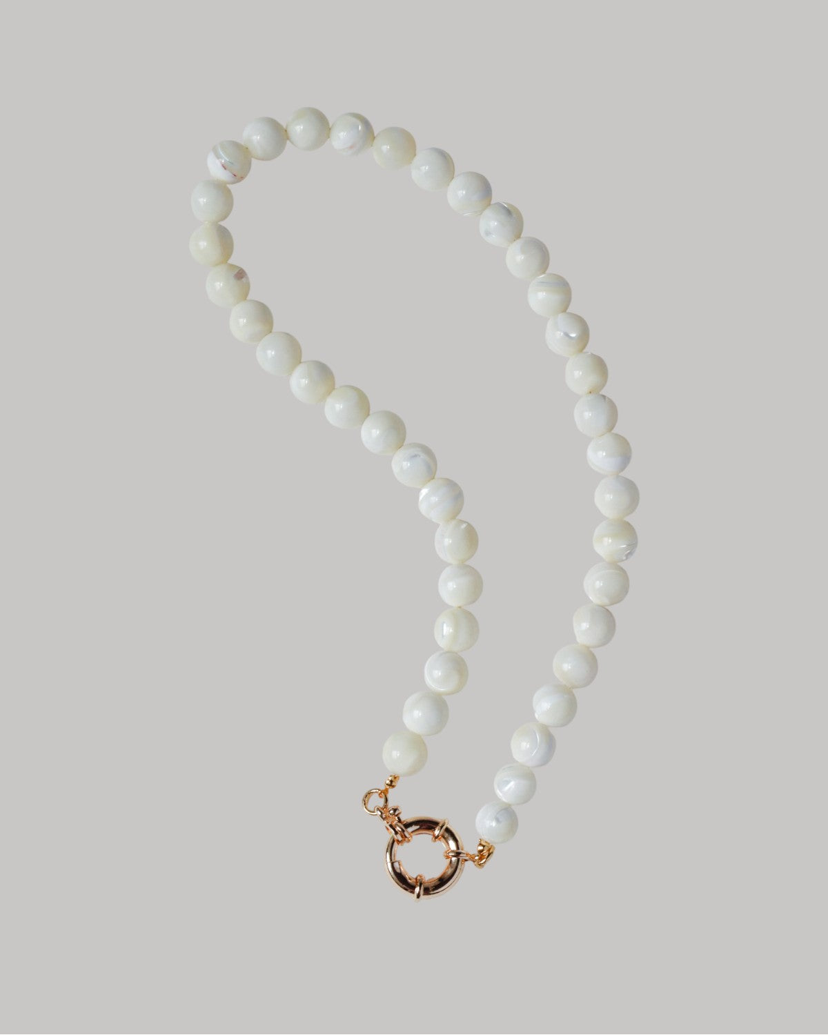 A charmingly simple necklace strung with shimmering mother-of-pearl beads and a clever toggle clasp right in the middle – perfect for adding your favourite charms from our store, letting you mix and match your style. Wear it solo for a subtle shine, or rock it with charms – and flip that toggle clasp forwards or backwards for a fresh twist every time.