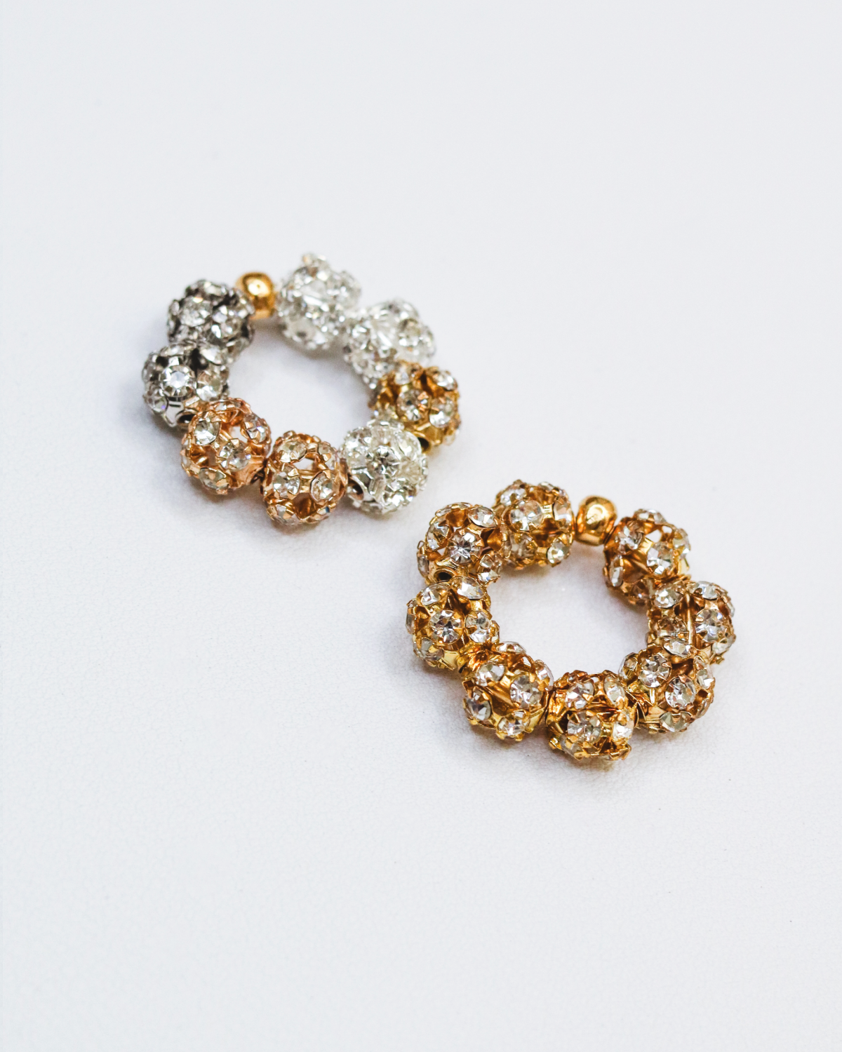 Donut-shaped earring charms made from shimmering rhinestone metal beads. Light, sparkly, and perfect for adding a touch of shine to your favourite hoops.