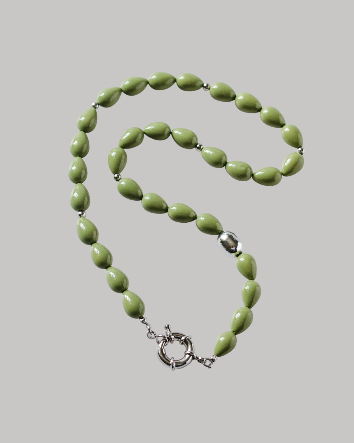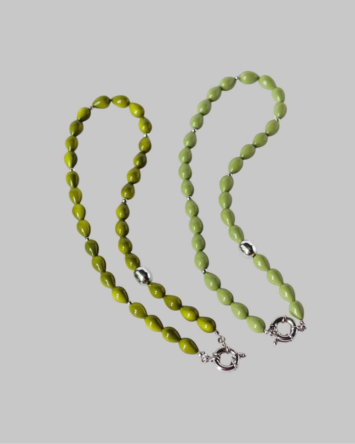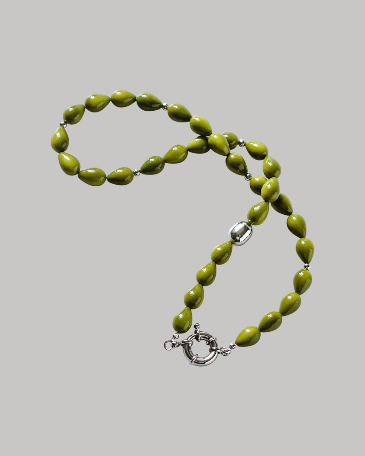 A strand of beads with a toggle clasp and silver or gold-tone accents, ready to hold your chosen charms or shine on its own. Available in soft olive or a creamy olive blend – a gentle foundation for layering, styling, and telling your own story.